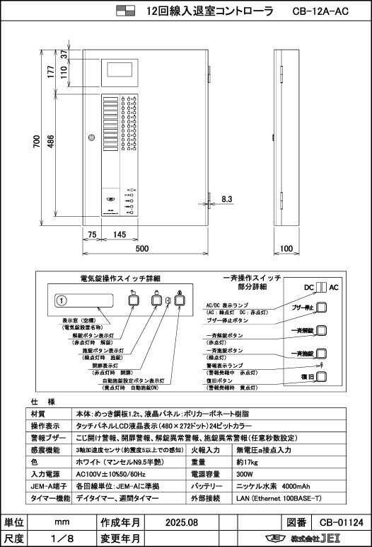 | 製品名 | 電気錠制御盤 CB-12A-AC |