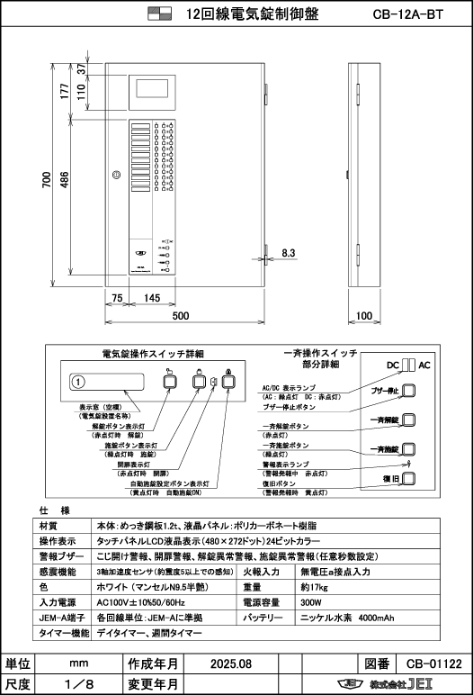 | 製品名 | 電気錠制御盤 CB-12A-BT |