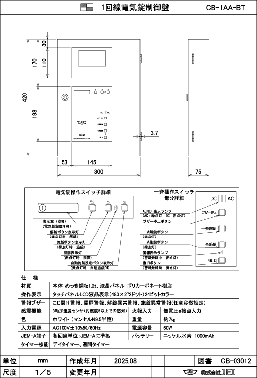 電気錠制御盤 CB-1AA-BT 図面紹介