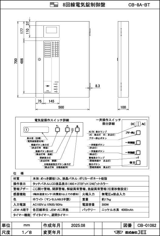 電気錠制御盤 CB-8A-BT 図面紹介