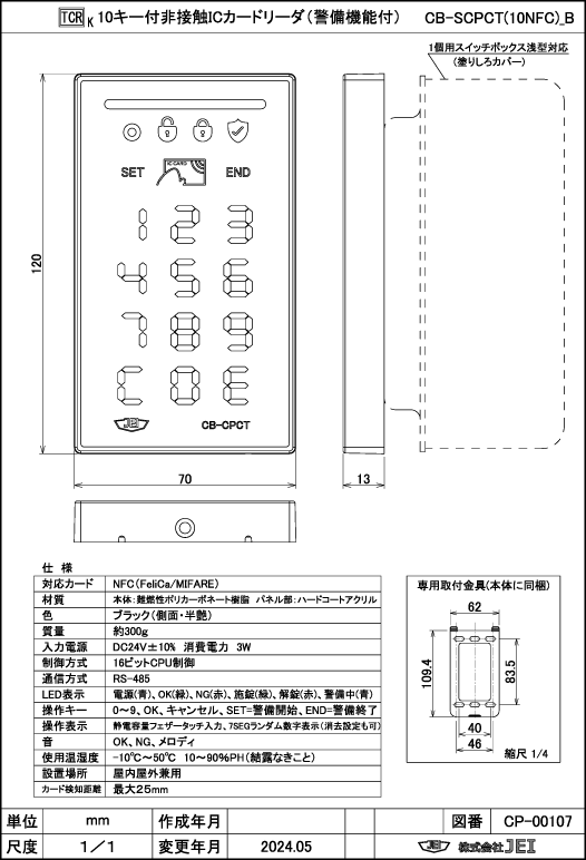 10キー付非接触ICカードリーダ(警備機能付) CB-SCPCT(10NFC)_B 図面紹介